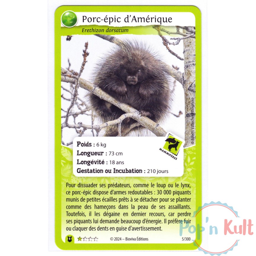 Carte Défis Nature Protect 5/300 Porc-épic d'Amérique ★ [FR] Forces de la Nature Near Mint