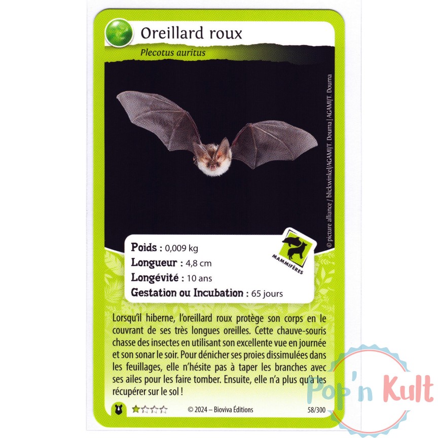 Carte Défis Nature Protect 58/300 Oreillard roux ★ [FR] Forces de la Nature Near Mint