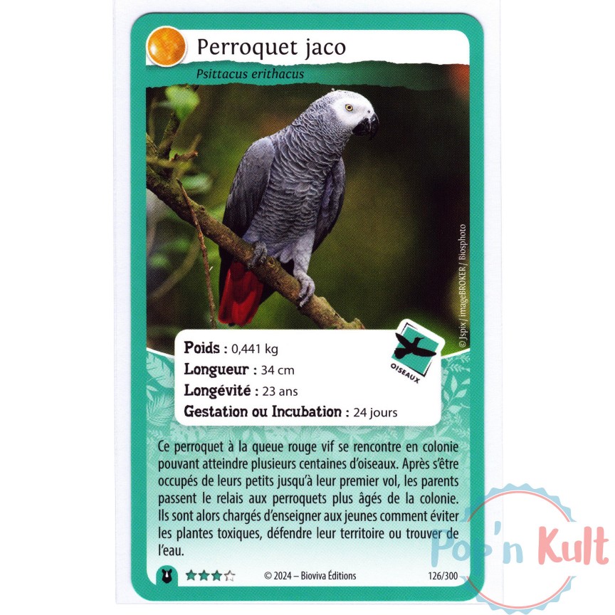 Carte Défis Nature Protect 126/300 Perroquet jaco ★★★ [FR] Forces de la Nature Near Mint