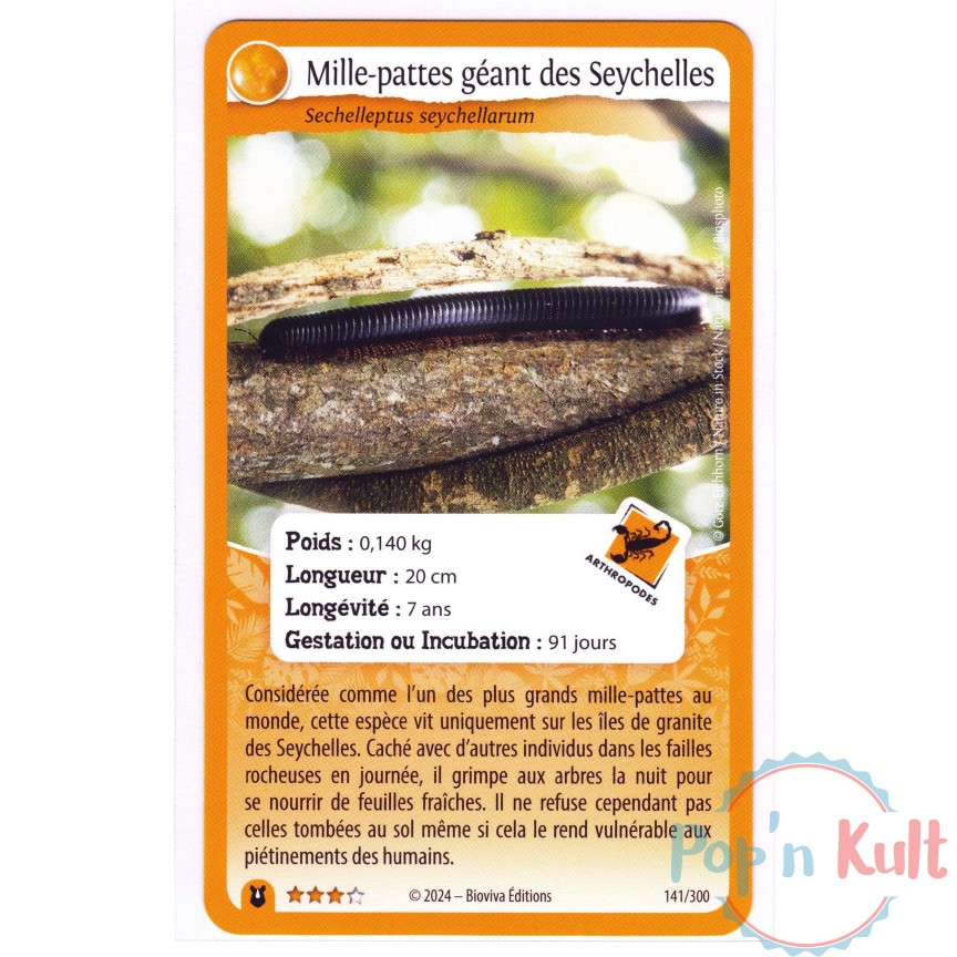 Carte Défis Nature Protect 141/300 Mille-pattes géant des Seychelles ★★★ [FR] Forces de la Nature Near Mint