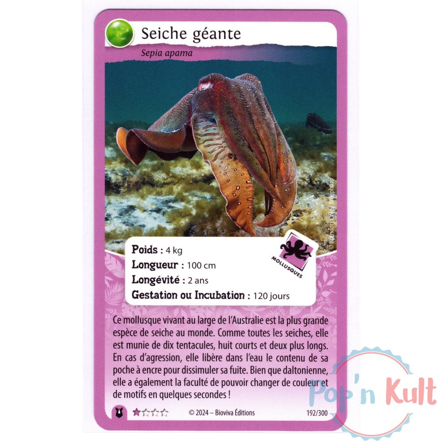Carte Défis Nature Protect 192/300 Seiche géante ★ [FR] Forces de la Nature Near Mint