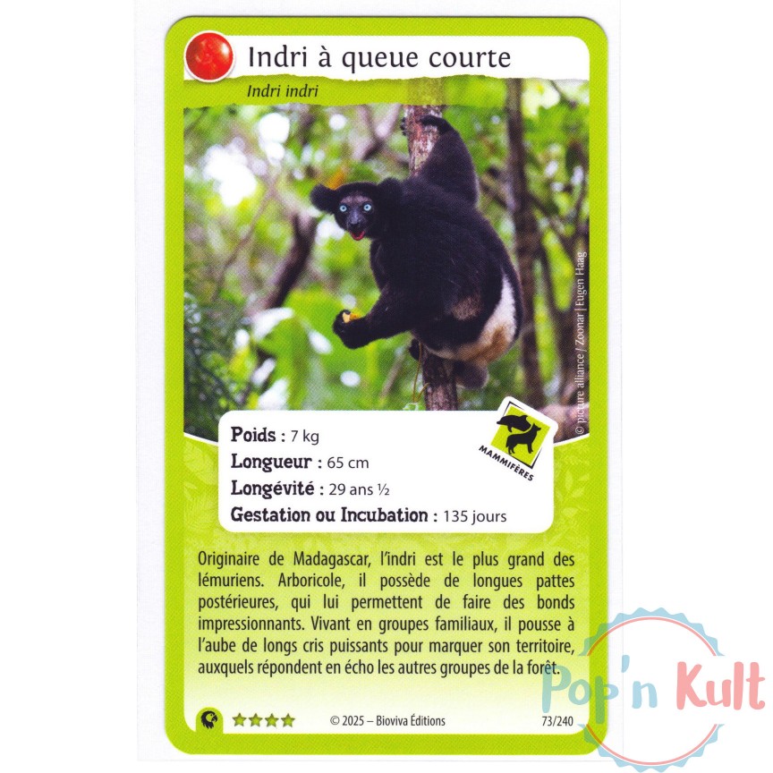 Carte Défis Nature Protect 73/240 Indri à queue courte ★★★★ [FR] Aventures Sauvages Near Mint