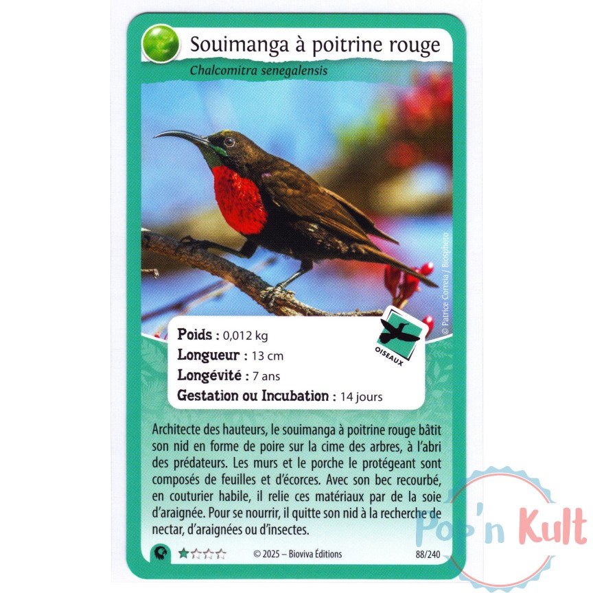 Carte Défis Nature Protect 88/240 Souimanga à poitrine rouge ★ [FR] Aventures Sauvages Near Mint