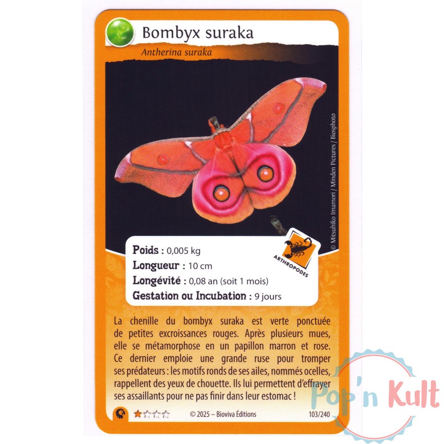 Carte Défis Nature Protect 103/240 Bombyx suraka ★ [FR] Aventures Sauvages Near Mint