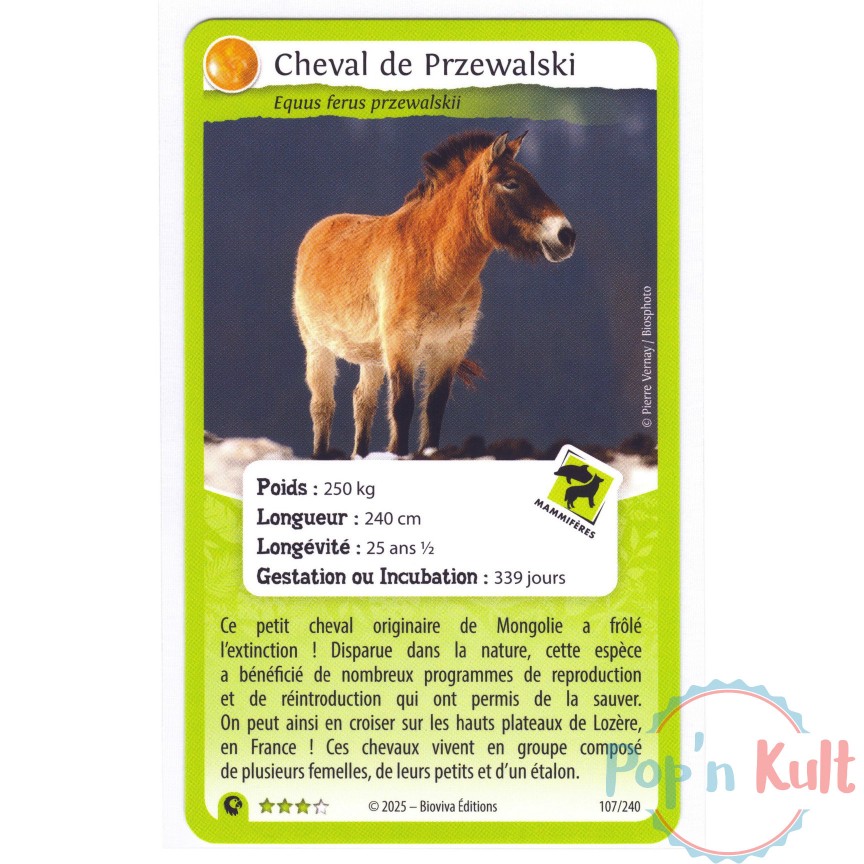 Carte Défis Nature Protect 107/240 Cheval de Przewalski ★★★ [FR] Aventures Sauvages Near Mint