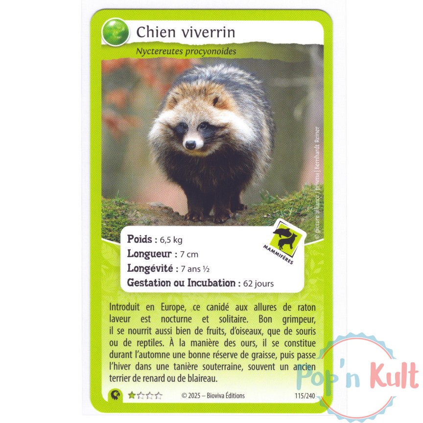 Carte Défis Nature Protect 115/240 Chien viverrin ★ [FR] Aventures Sauvages Near Mint
