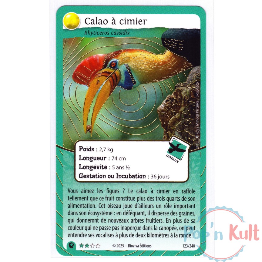 Carte Défis Nature Protect 123/240 Calao à cimier ★★ Brillante [FR] Aventures Sauvages Near Mint