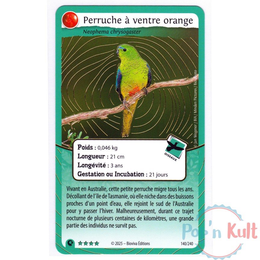 Carte Défis Nature Protect 140/240 Perruche à ventre orange ★★★★ Brillante [FR] Aventures Sauvages Near Mint