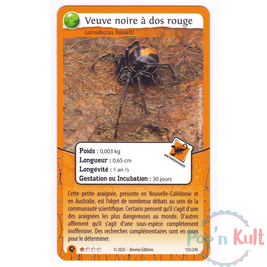 Carte Défis Nature Protect 155/240 Veuve noire à dos rouge ★ Brillante [FR] Aventures Sauvages Near Mint