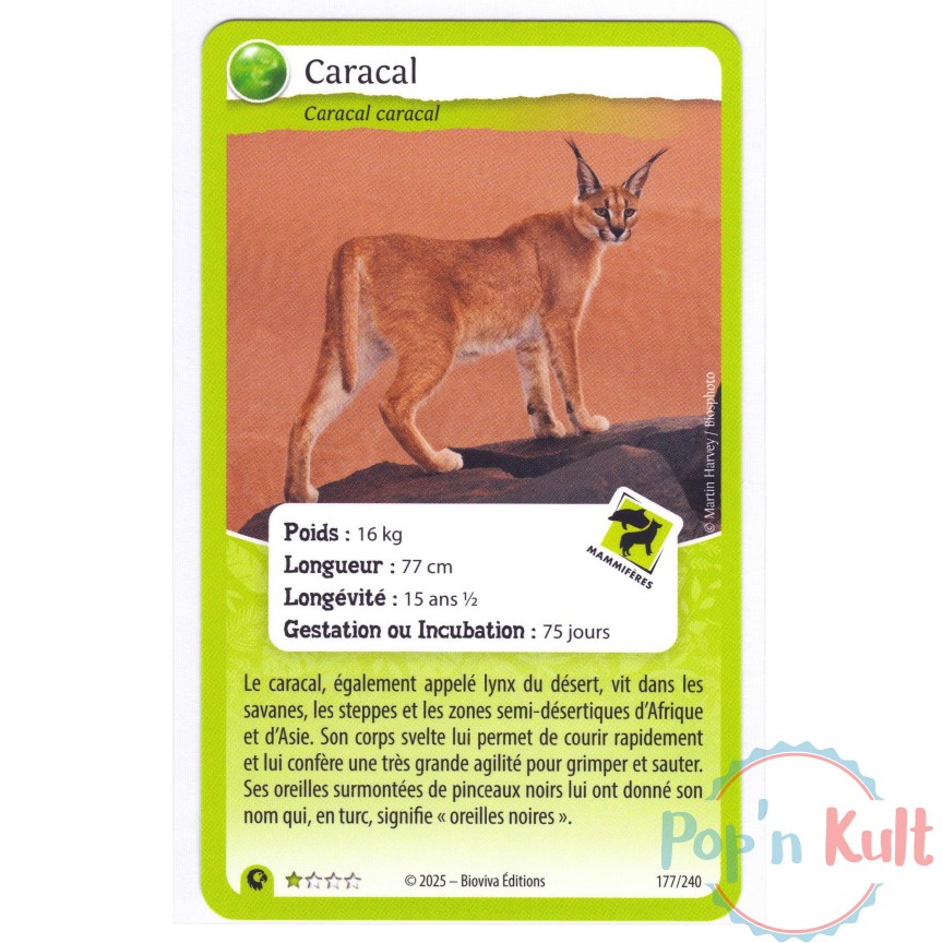 Carte Défis Nature Protect 177/240 Caracal ★ [FR] Aventures Sauvages Near Mint