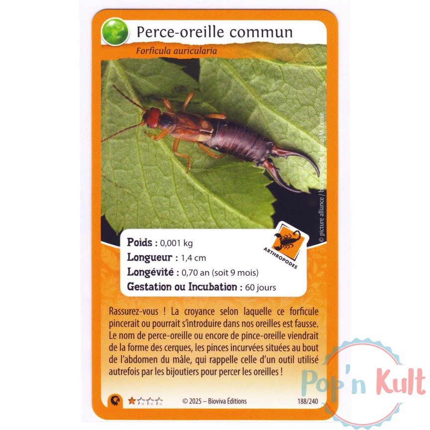 Carte Défis Nature Protect 188/240 Perce-oreille commun ★ [FR] Aventures Sauvages Near Mint
