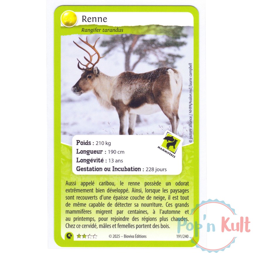 Carte Défis Nature Protect 191/240 Renne ★★ [FR] Aventures Sauvages Near Mint