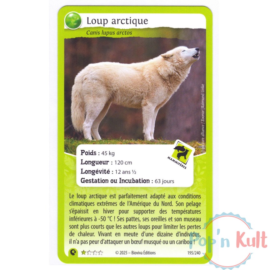 Carte Défis Nature Protect 195/240 Loup arctique ★ [FR] Aventures Sauvages Near Mint